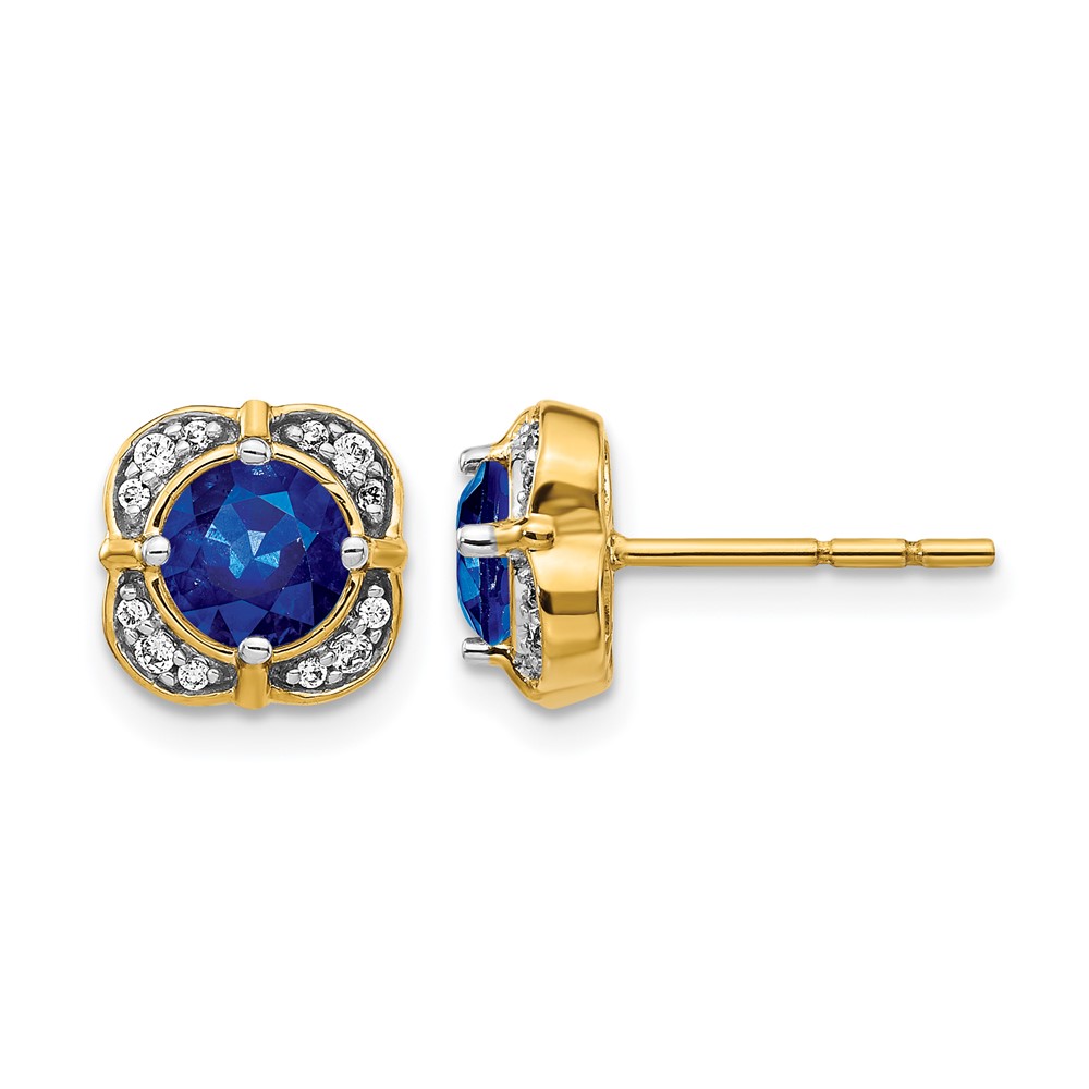 14k 5.2mm Round Sapphire and Diamond Fancy Square Post Earrings