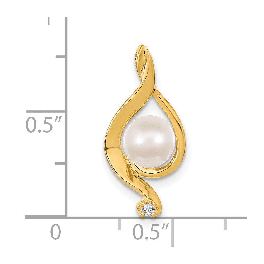 14k 5-6mm Near Round White Freshwater Cultured Pearl and AA Diamond Chain Slide