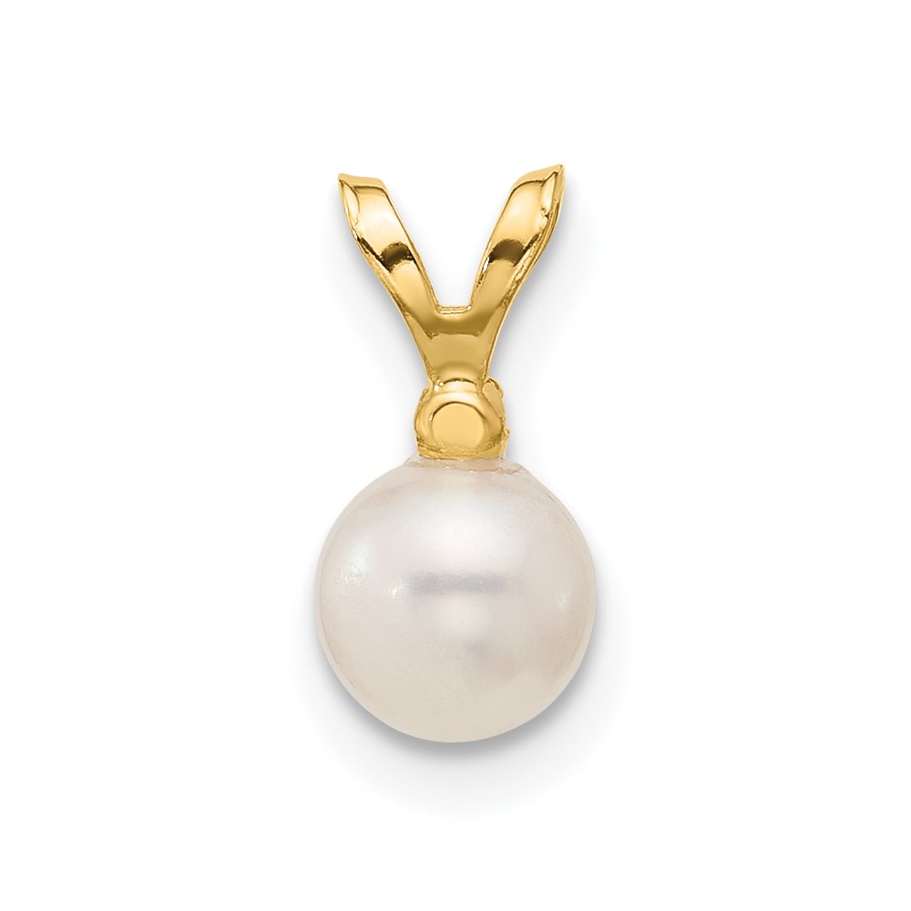 14k 5-6mm White Round Freshwater Cultured Pearl and .01 Carat Diamond Pendant