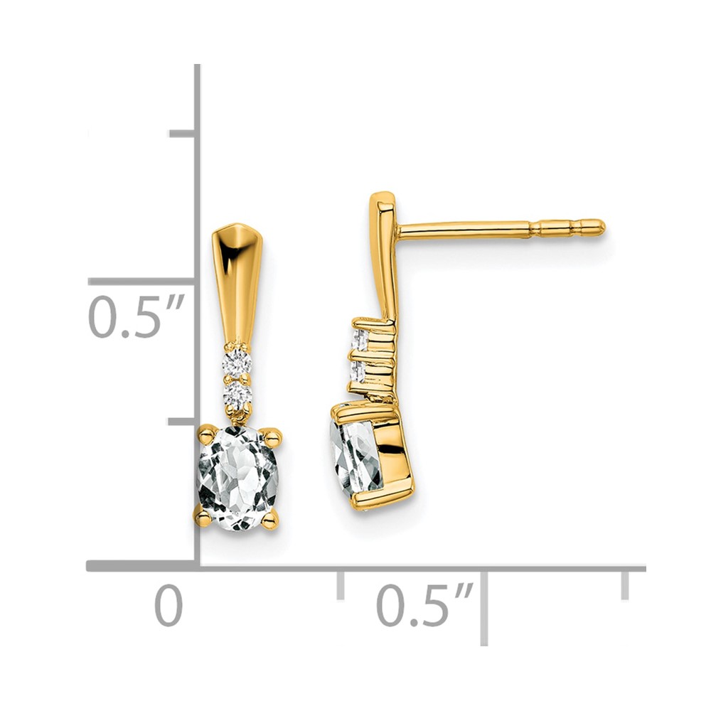 14K 5×3 Oval April/White Topaz and Diamond Dangle Post Earrings