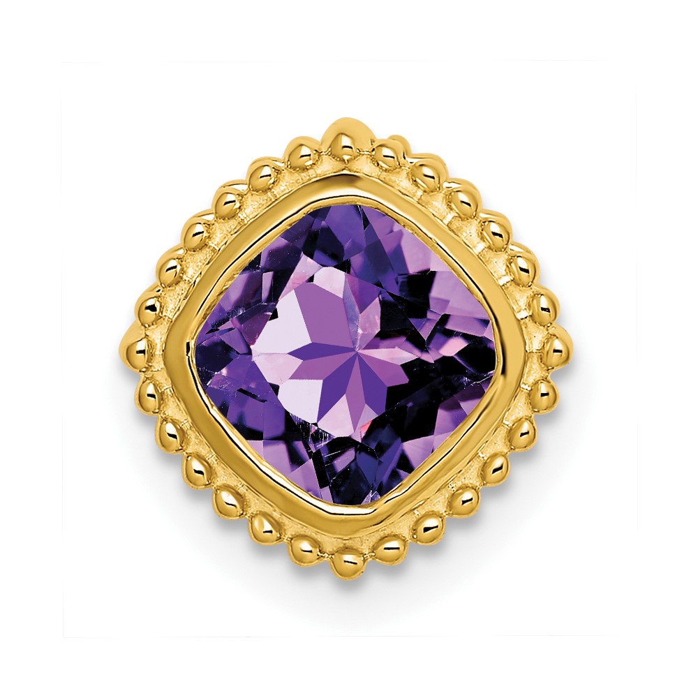 14k 6.5mm Cushion Amethyst Beaded Edge Chain Slide