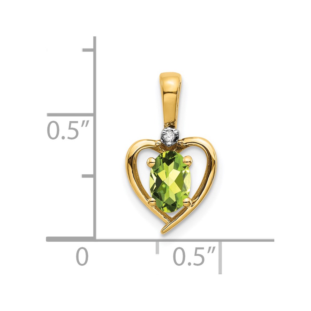 14k 6×4 Oval August/Peridot and Diamond Heart Pendant