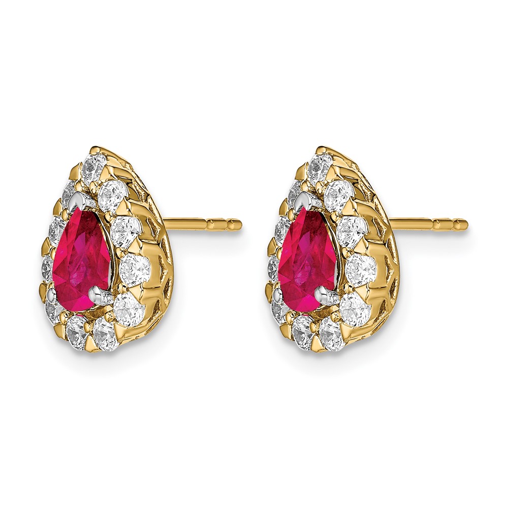 14k 6x4mm Pear Ruby and 3/4 carat Diamond Halo Post Earrings