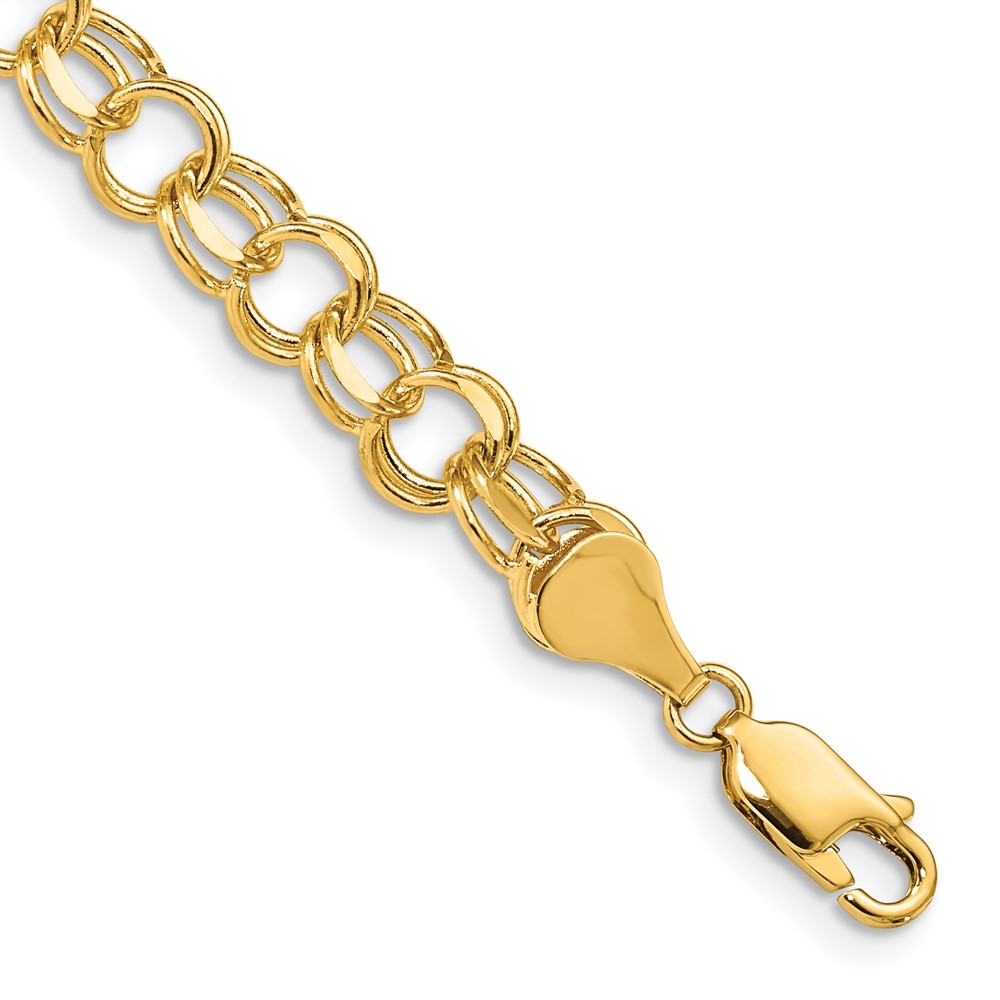 14k 7.5mm Solid Double Link Charm Bracelet
