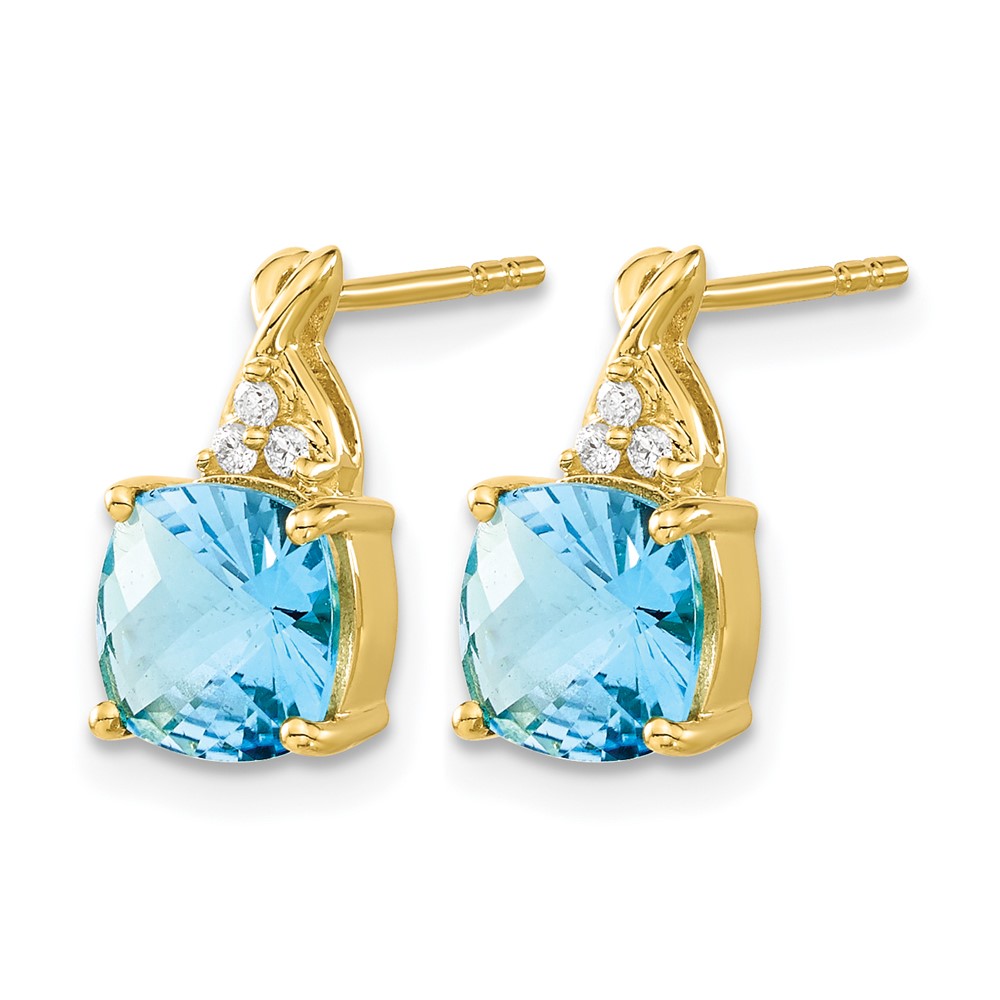 14k 7mm Cushion Checkerboard December/Blue Topaz and Diamond Post Earrings