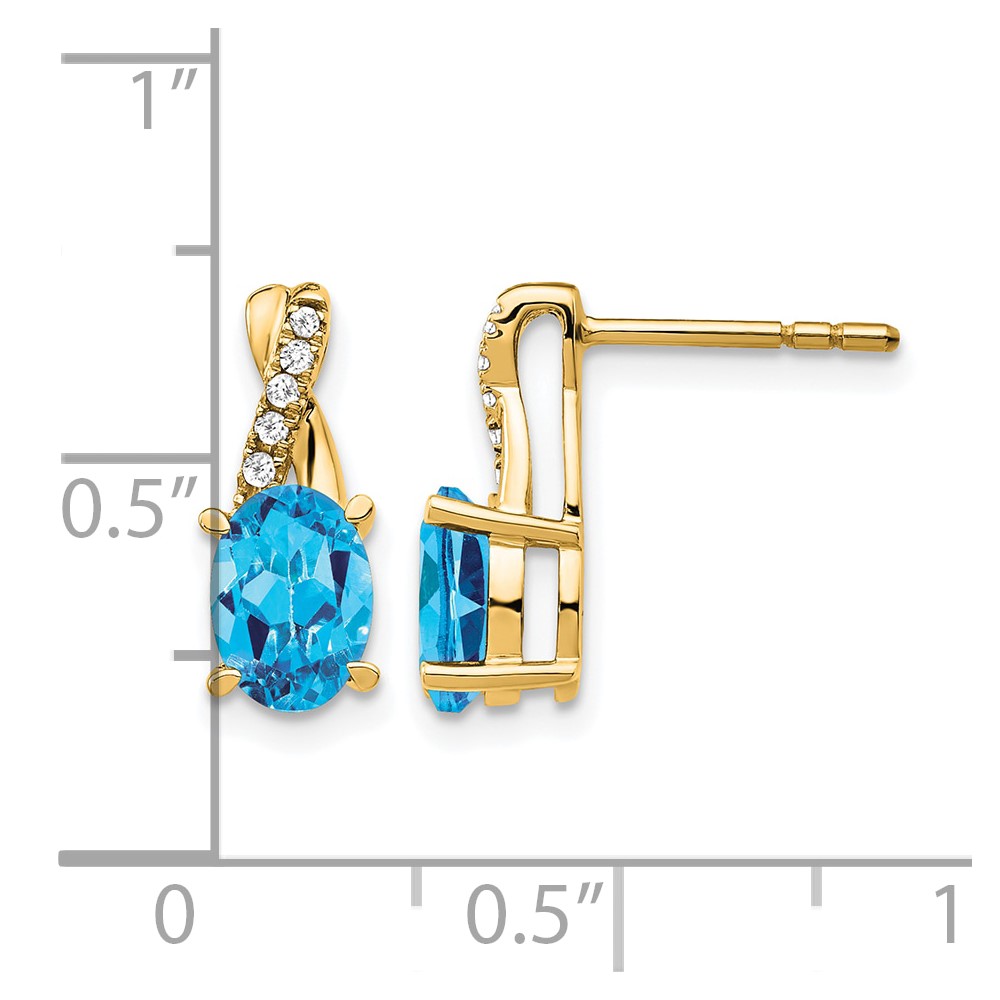 14k 7×5 Oval December/Blue Topaz and Diamond Post Earrings