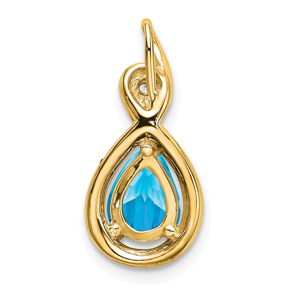 14k 8x6mm Pear Blue Topaz and Diamond Chain Slide