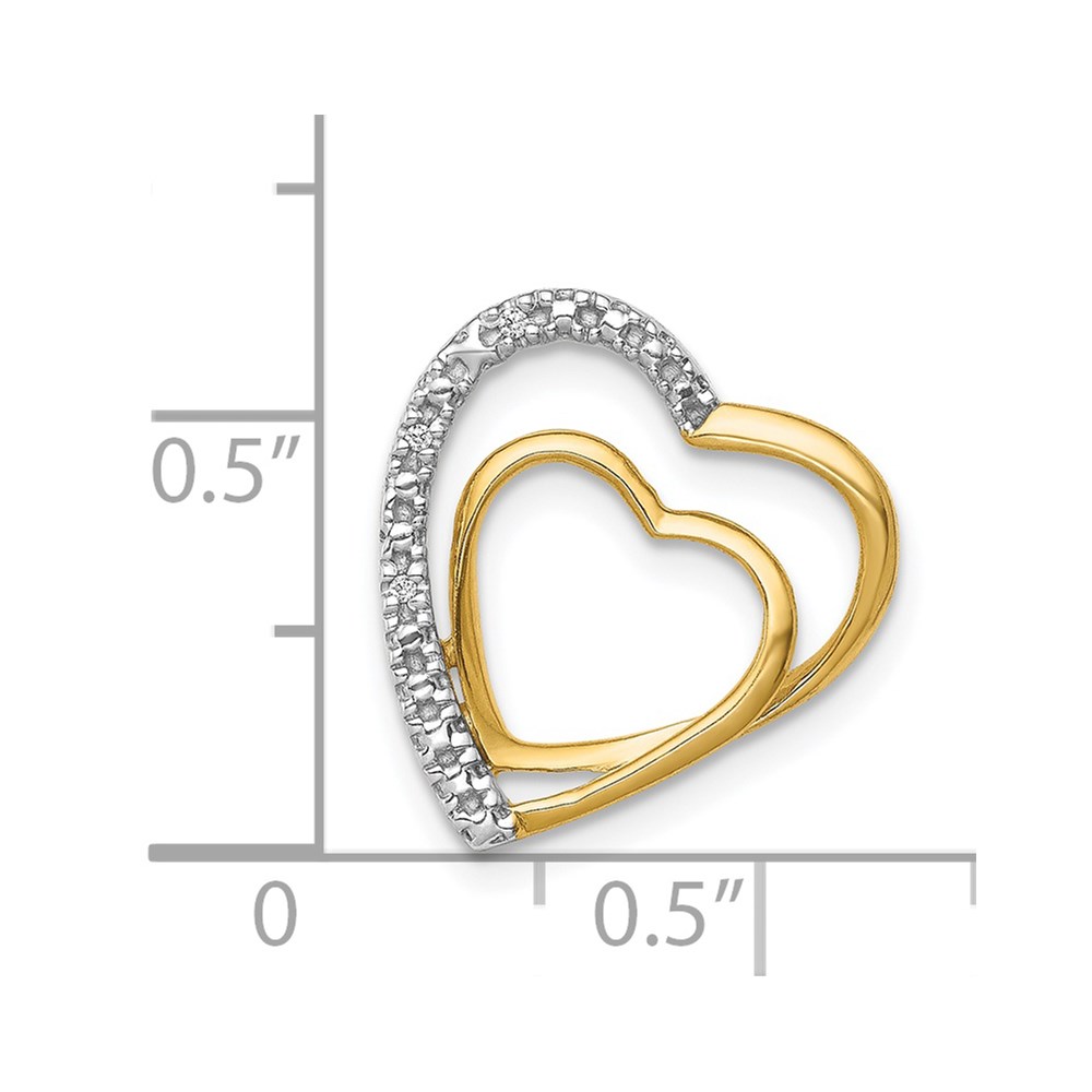 14k and White Rhodium .01 carat Diamond Double Heart Chain Slide
