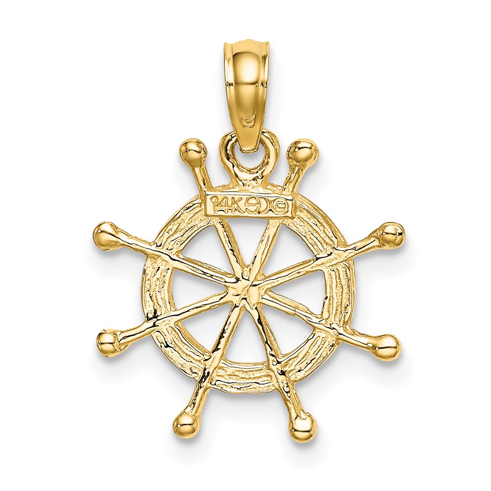 14K and White Rhodium 2-D Ship Wheel Charm