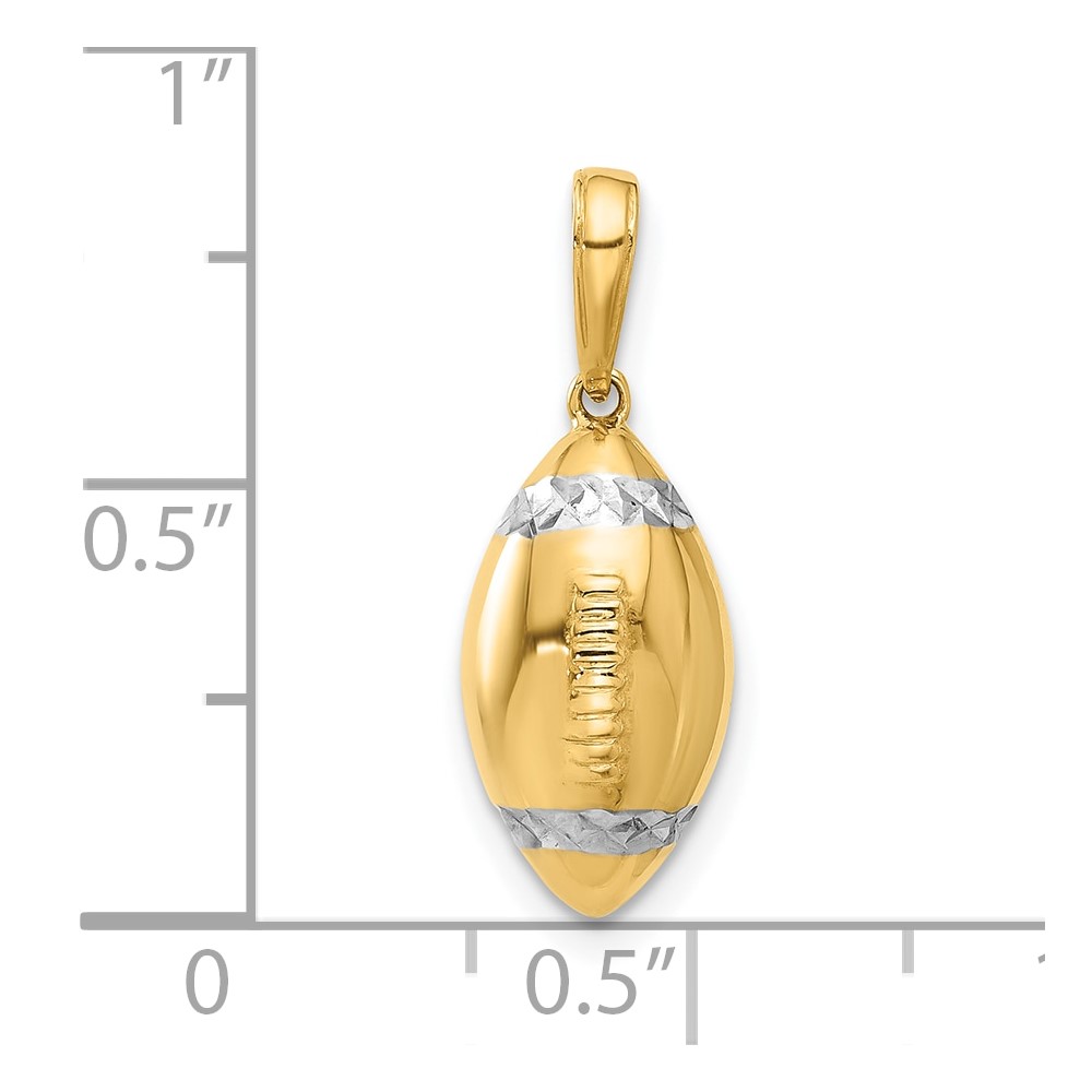 14k and White Rhodium Diamond-cut 3-D Football Pendant