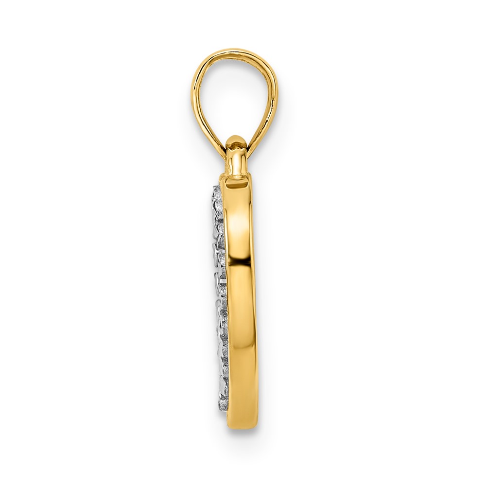 14k and White Rhodium Diamond-cut Border Heart Pendant