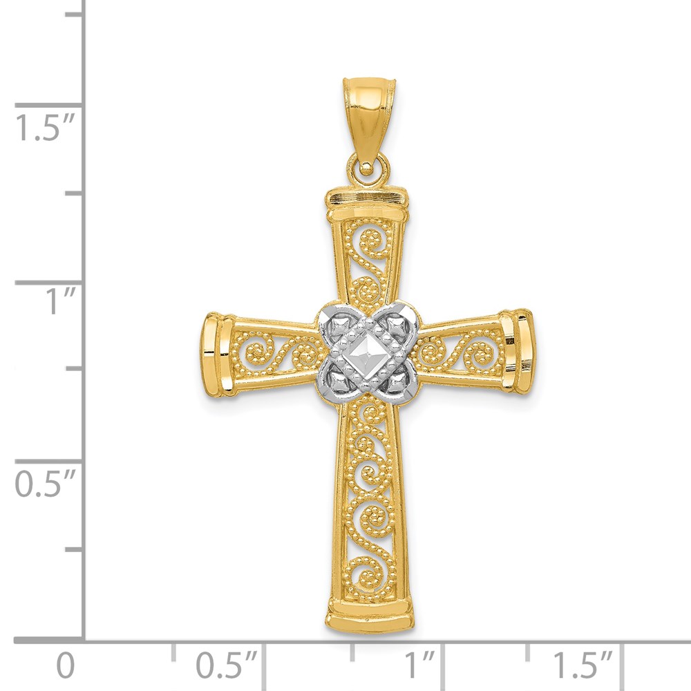 14k and White Rhodium Diamond-cut Filigree Cross Pendant