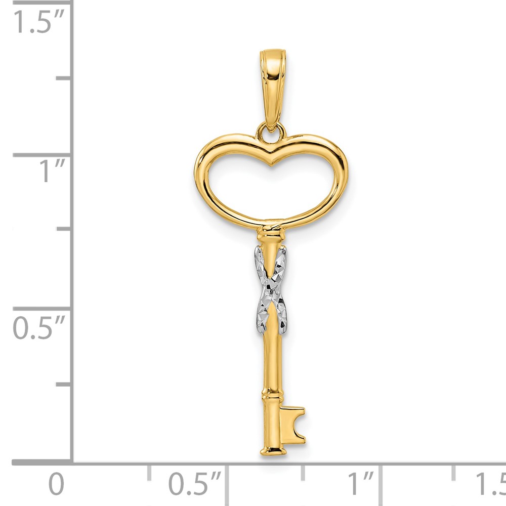 14k and White Rhodium Diamond-cut Heart Key Pendant