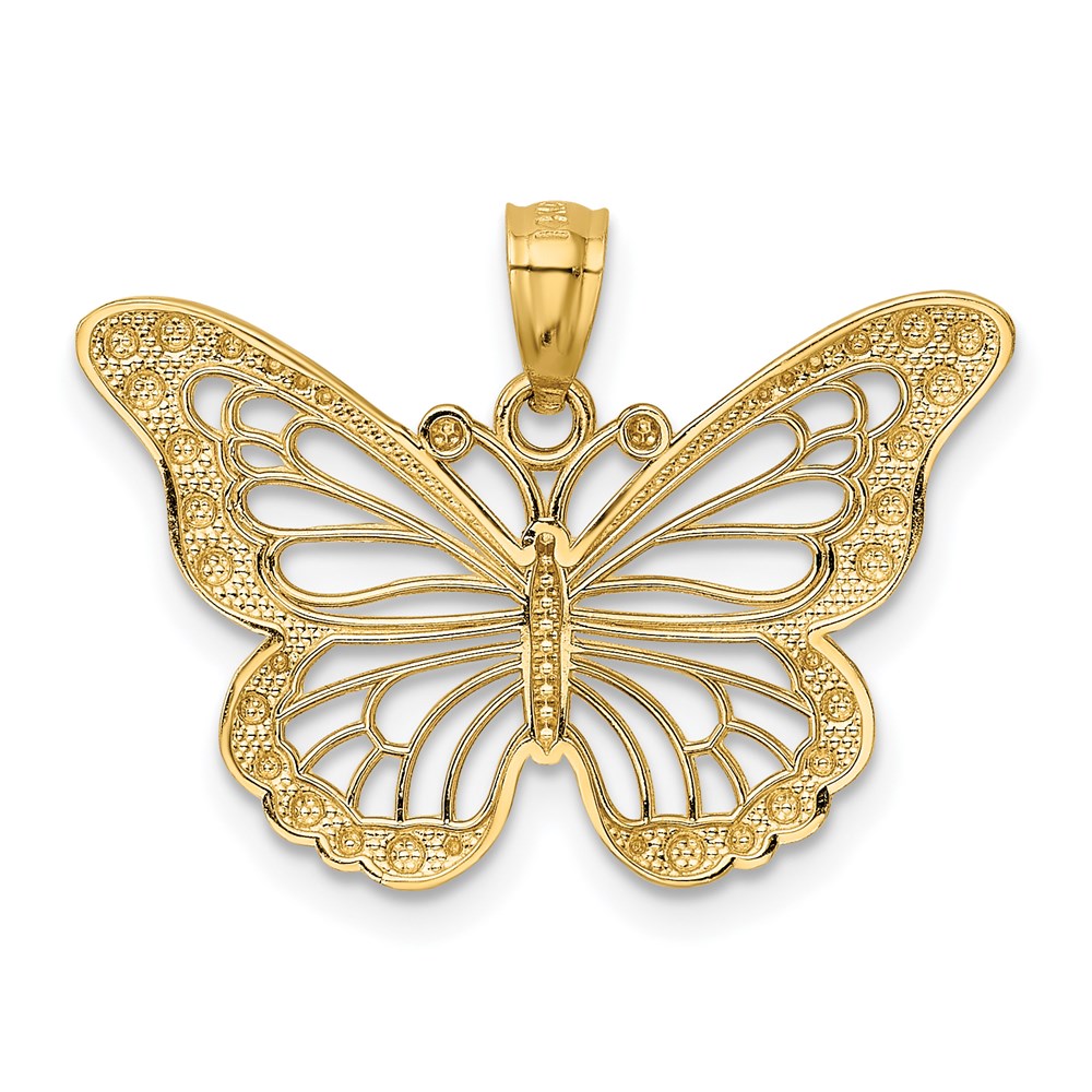 14k and White Rhodium Diamond-cut Polished Cut-out Butterfly Pendant