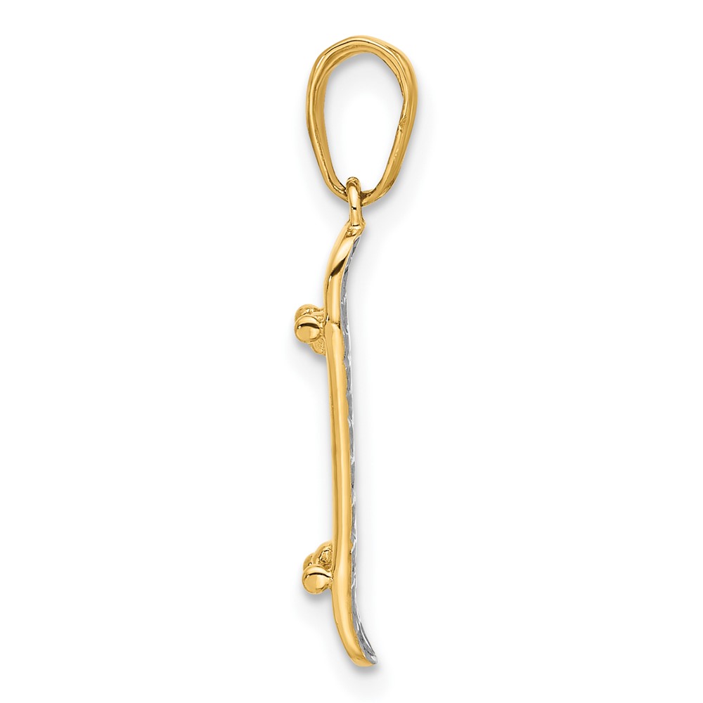 14k and White Rhodium Diamond-cut Skateboard Pendant