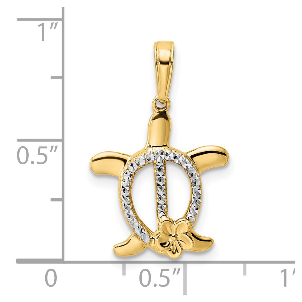 14k and White Rhodium Diamond-cut Turtle with Flower Pendant