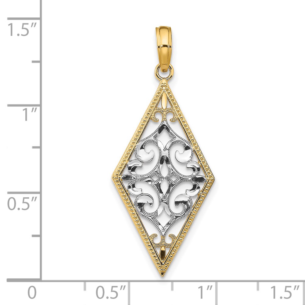 14k and White Rhodium Diamond-Shape Cut-Out Filigree Charm