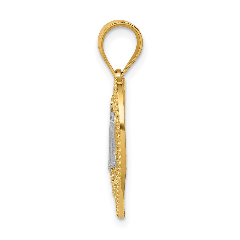 14k and White Rhodium Filigree #1 MOM Heart Pendant