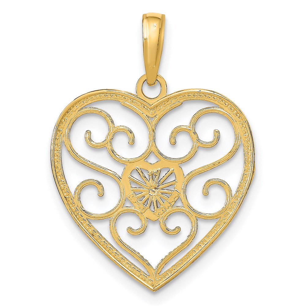 14k White Gold 1/4 carat Lab Grown Diamond VS/SI+ G+ Complete Swirl Heart Chain Slide Pendant
