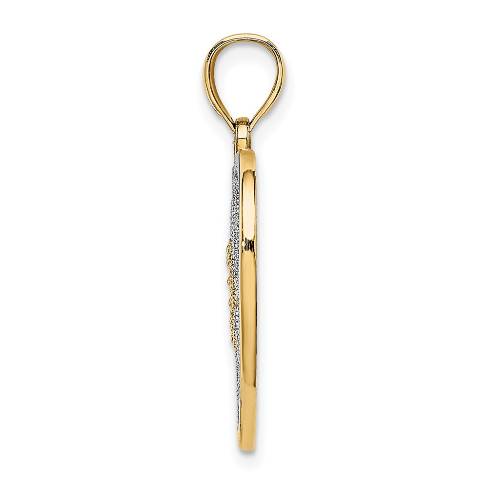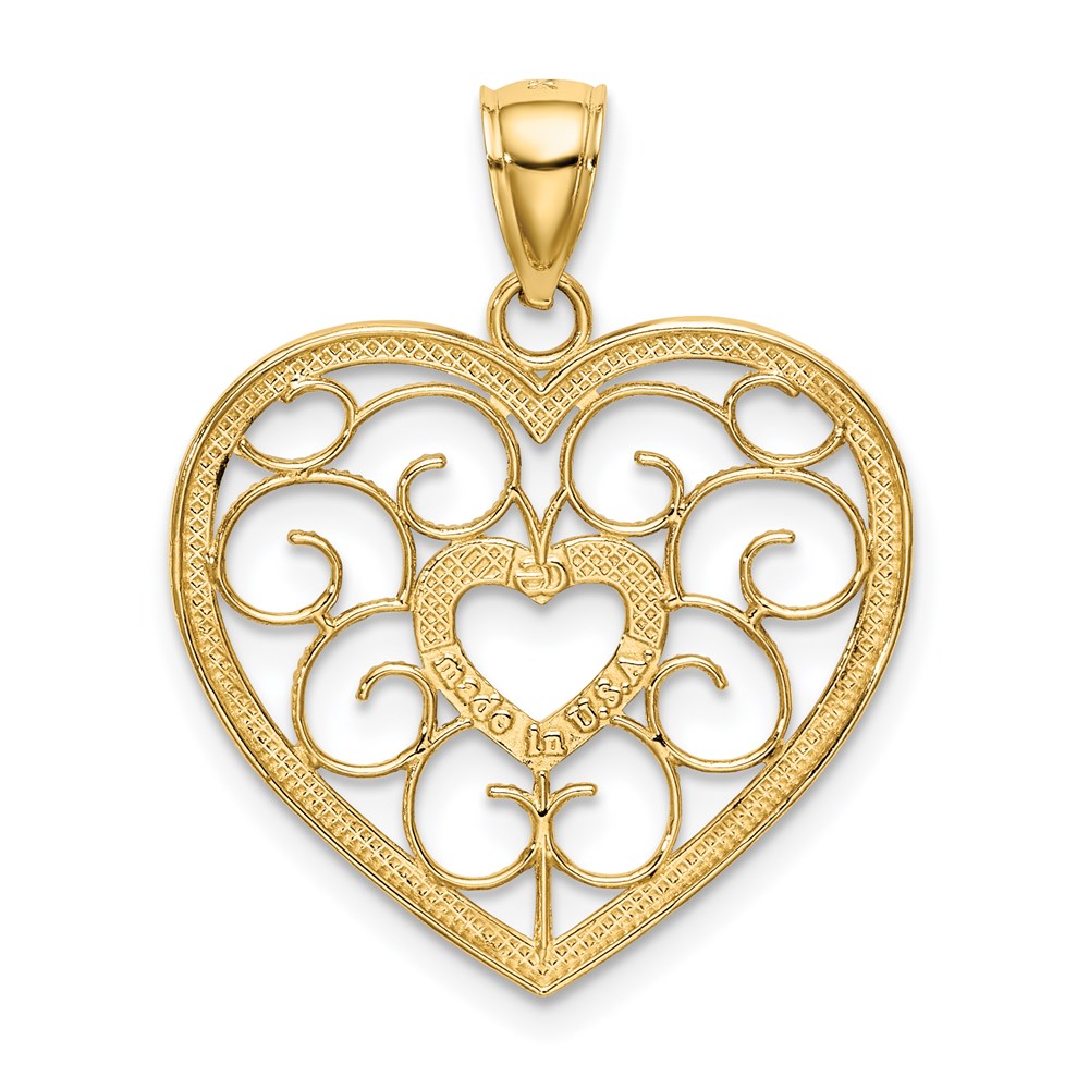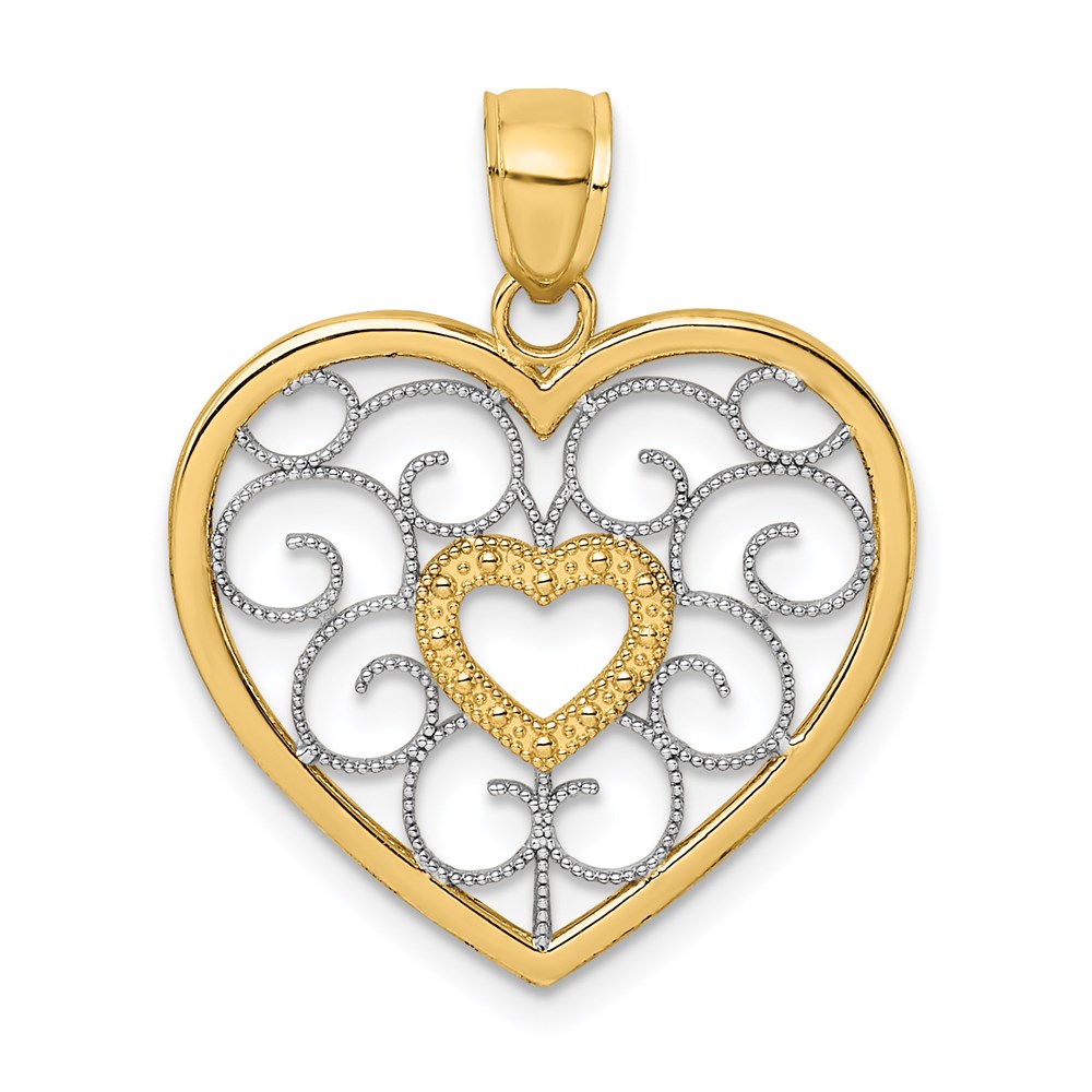 14k and White Rhodium Filigree Heart Charm