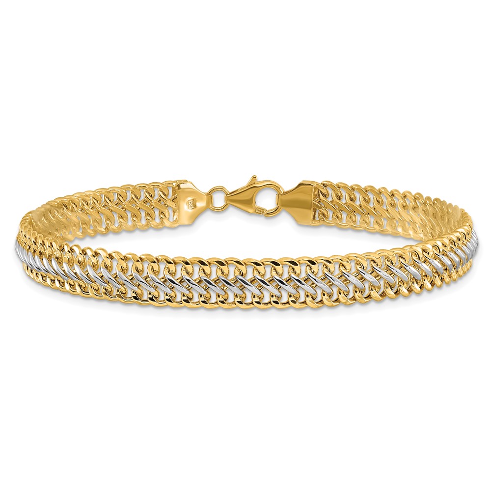 10k Two-tone 5.38mm Hand-polished Fancy Link Bracelet