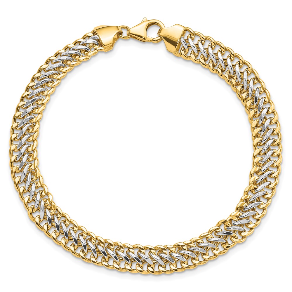 10k Two-tone 7.85mm Hand Polished Fancy Link Bracelet