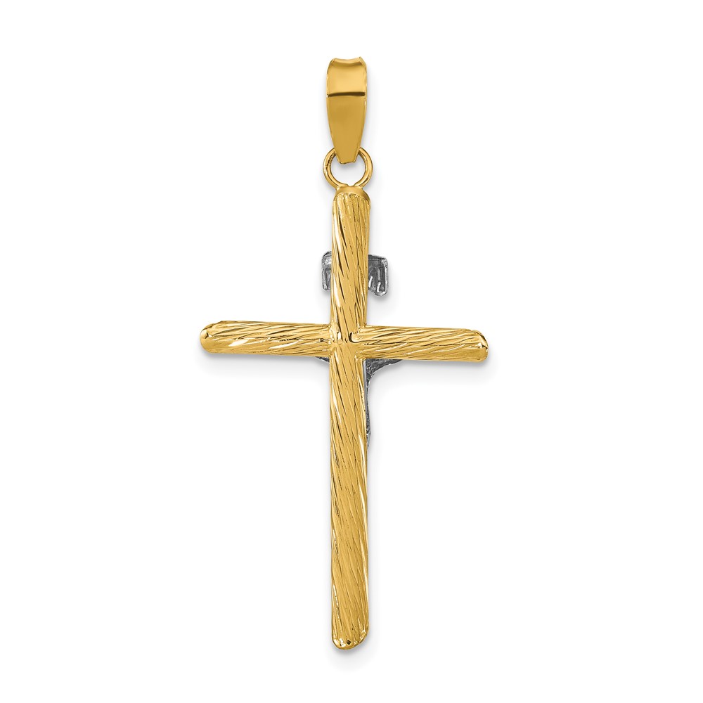 14K and White Rhodium Polished and Textured INRI Crucifix Cross Pendant