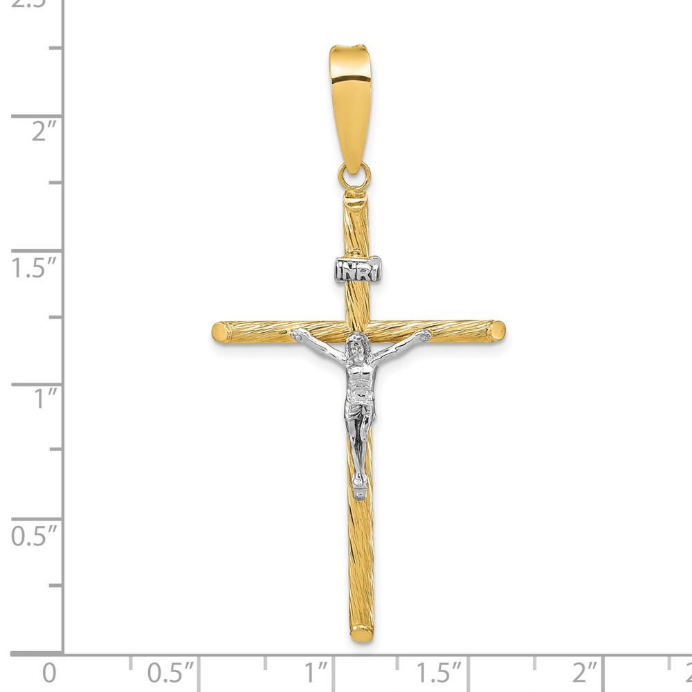 14K and White Rhodium Polished and Textured INRI Crucifix Cross Pendant