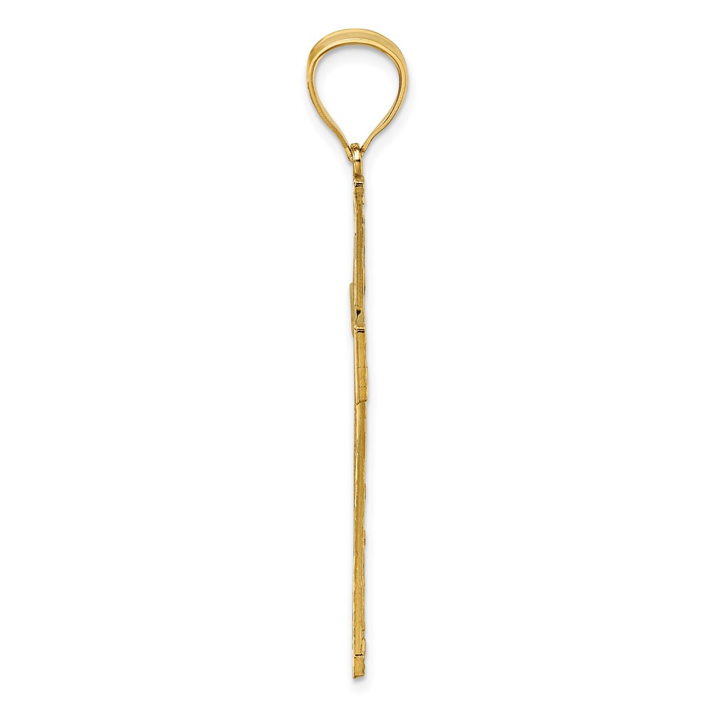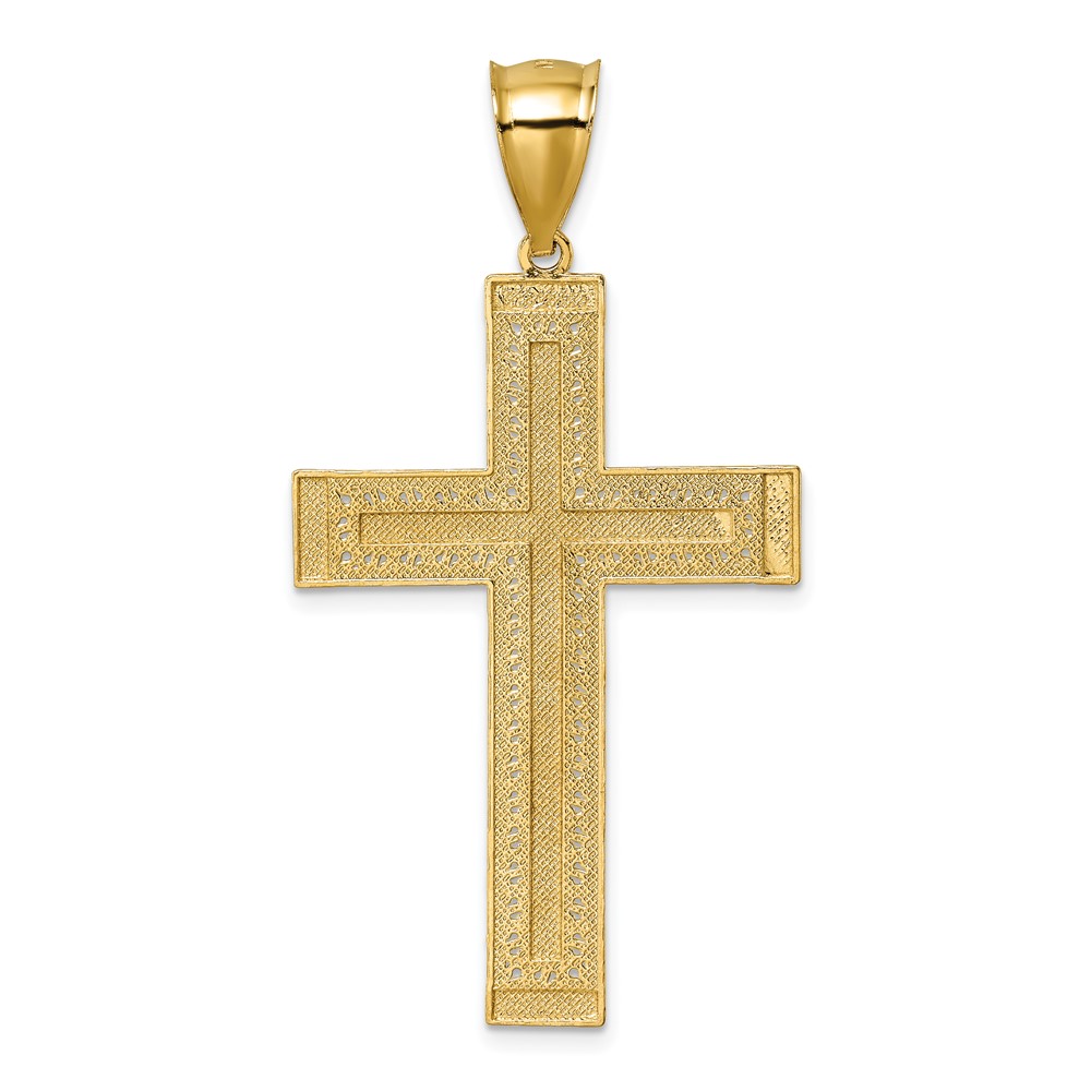 14k and White Rhodium Polished Diamond-cut Textured Fancy Latin Cross Pendant