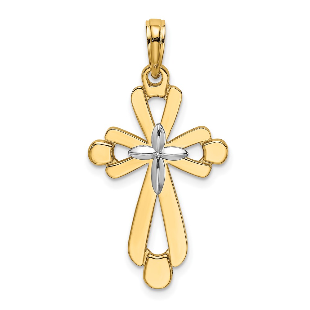14K and White Rhodium Polished Fancy Cross Charm