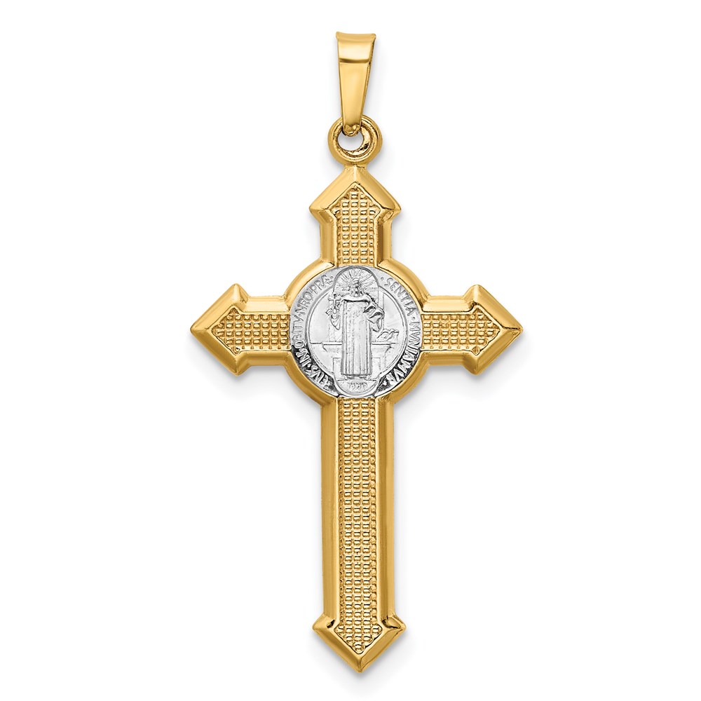 14k and White Rhodium St. Benedict Hollow Medal INRI Crucifix Pendant