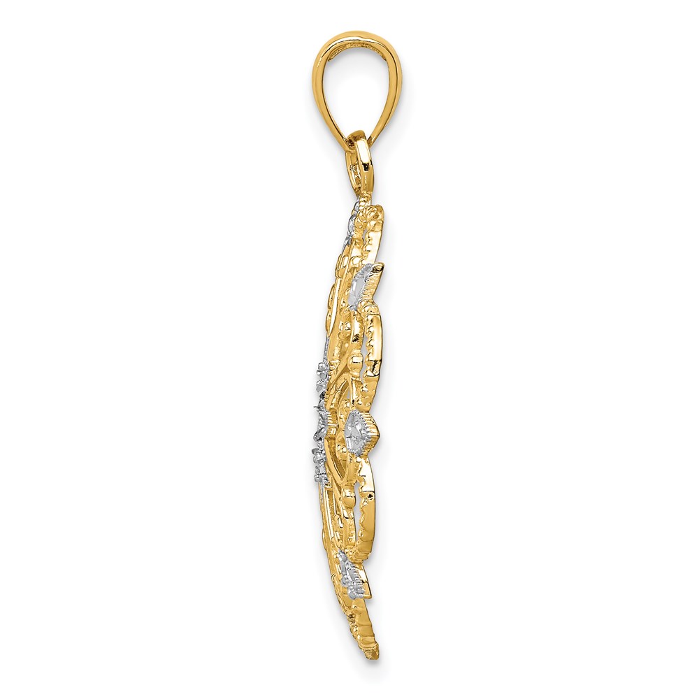 14k and White Rhodium Diamond-cut Fancy Swirl Pendant