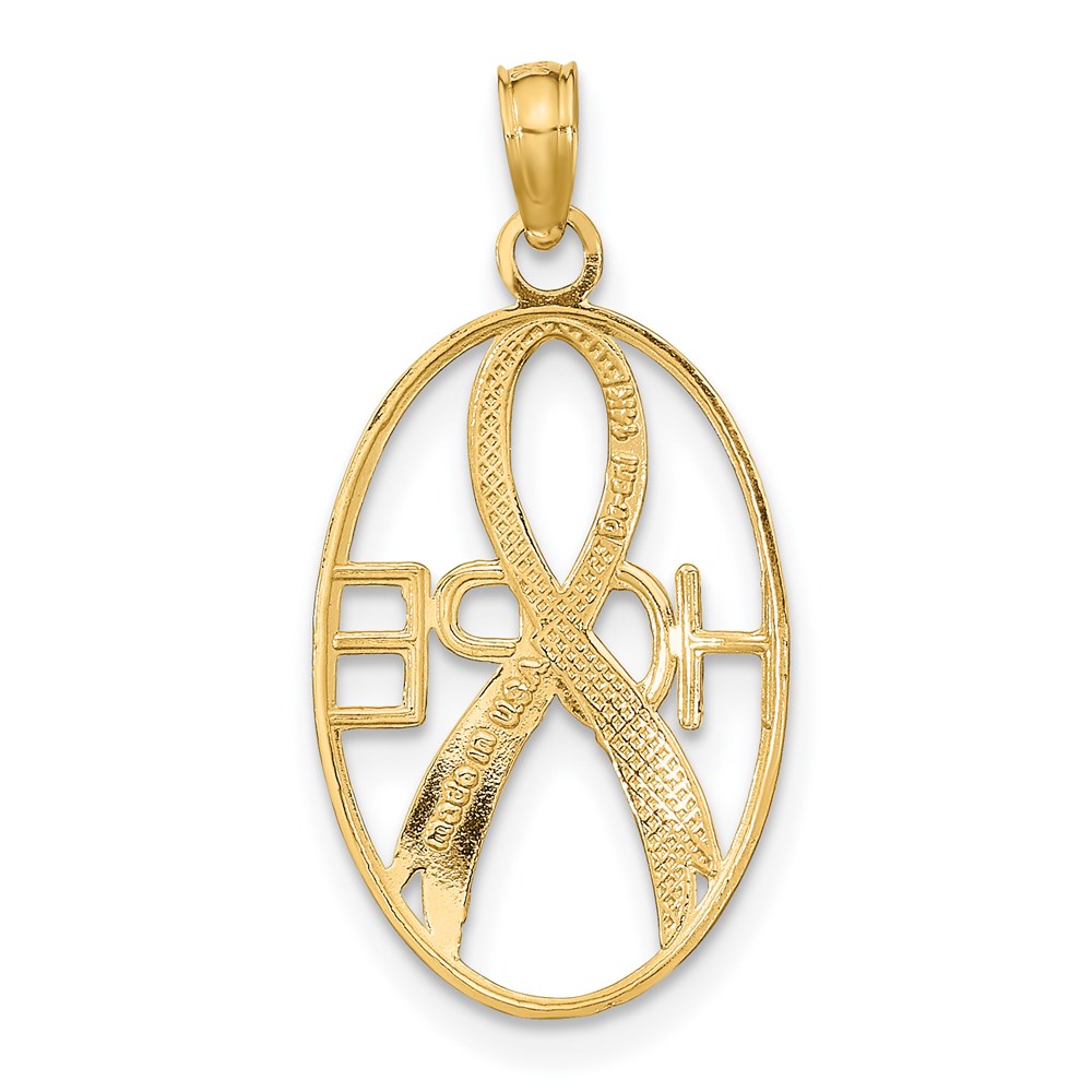 14k and White Rhodium Textured HOPE Awareness Ribbon in Oval Charm