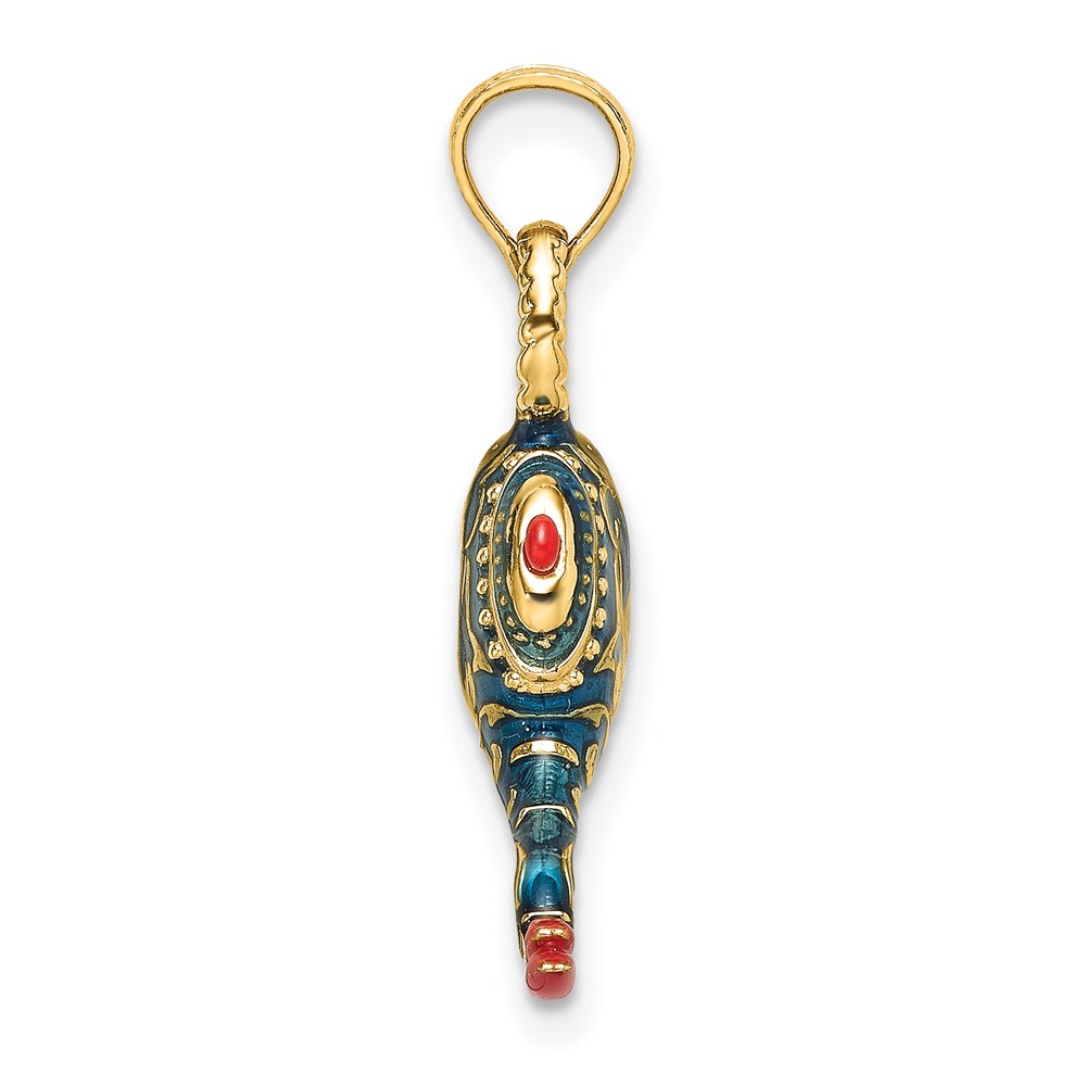 14K Blue and Red Enamel 3-D Textured Genie Lamp Charm