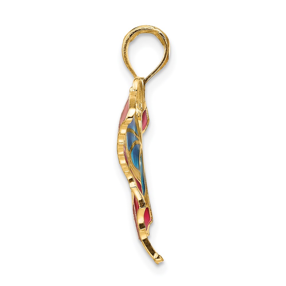14K Blue and Red Enameled Butterfly Pendant