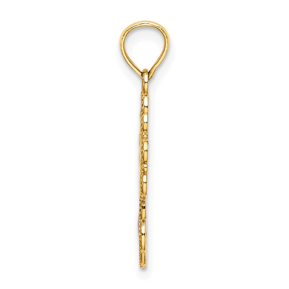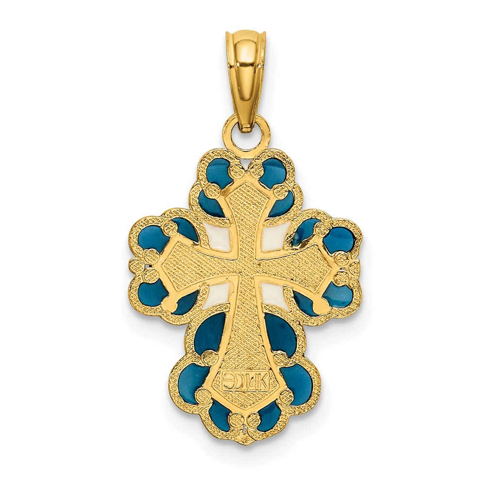 14K Blue/White/Red Enameled with Lacey Trim Cross Charm