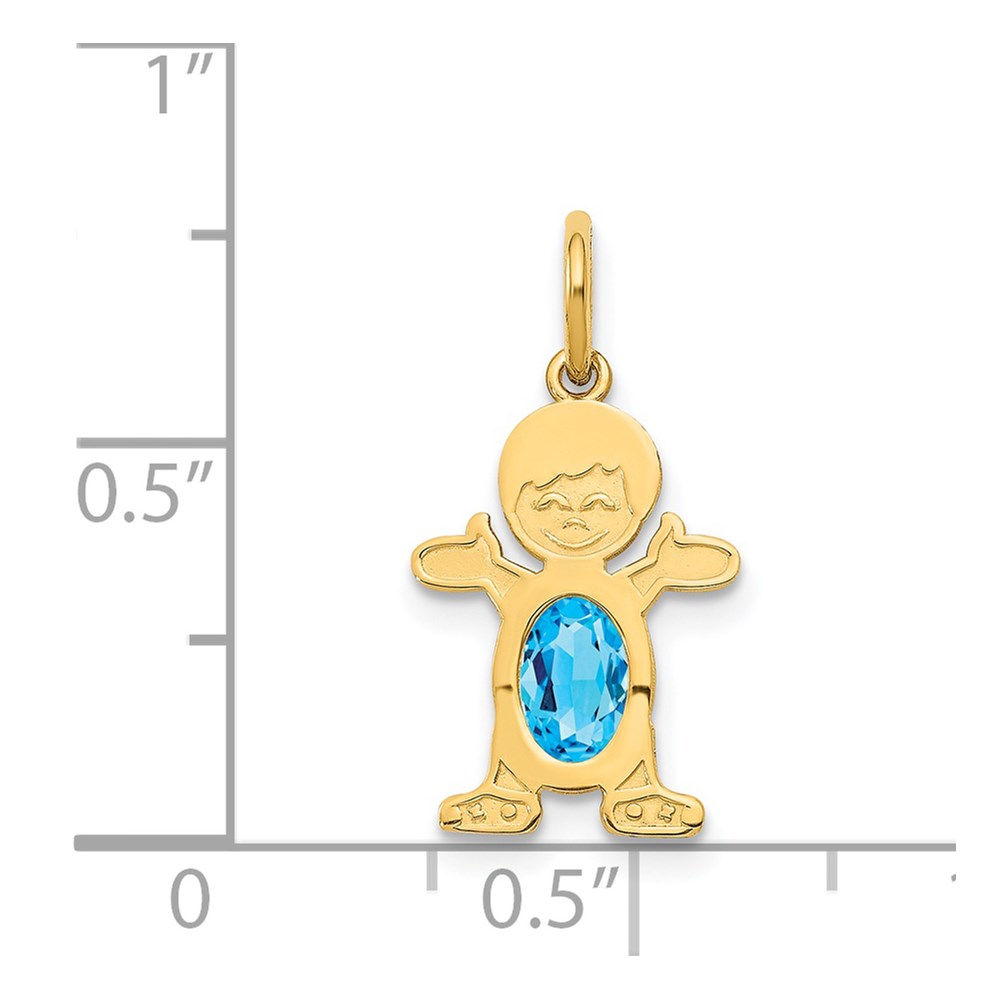 14K Boy Charm 6×4 Oval Genuine Blue Topaz-December