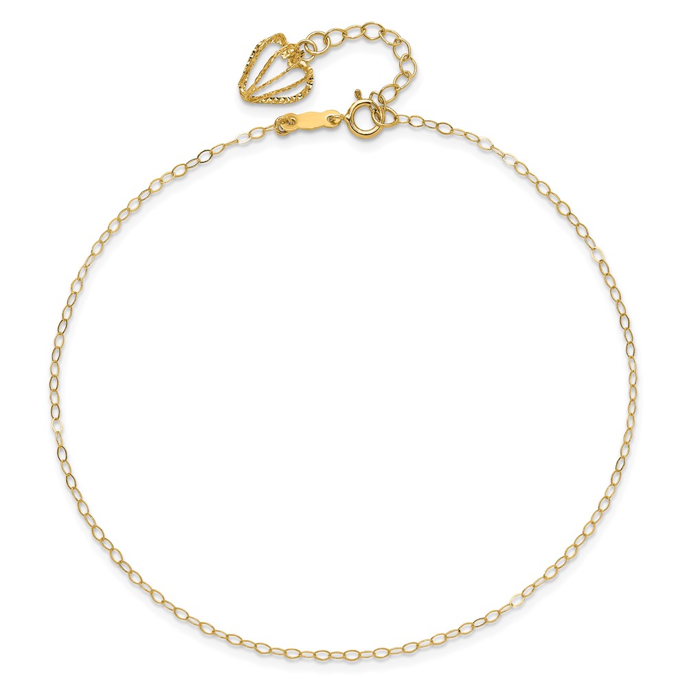 14K Cable Chain with Diamond-cut Heart Cage Dangle Plus Extender – Total Anklet
