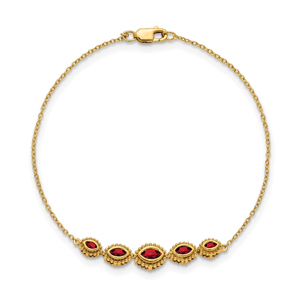 14k Complete 5-Stone Bezel-set Marquise Garnet and Chain 7 inch Bracelet