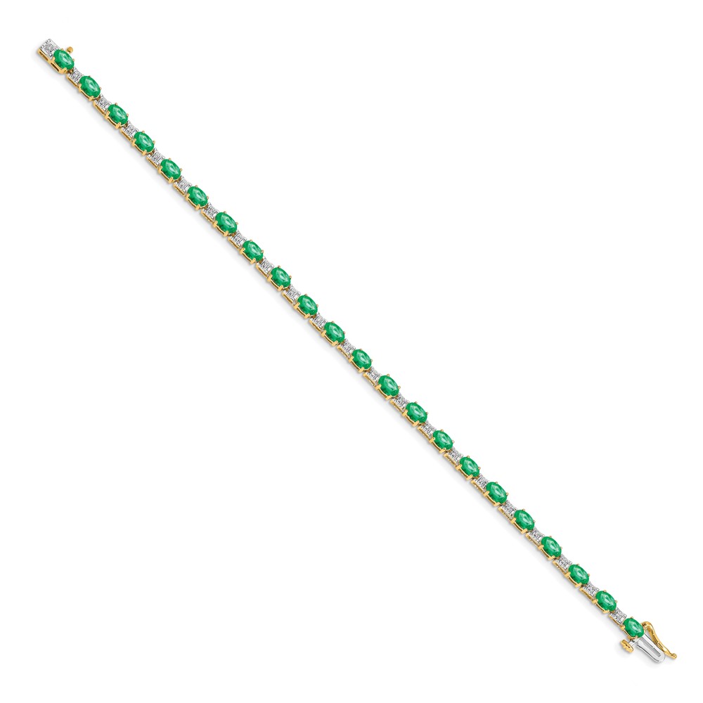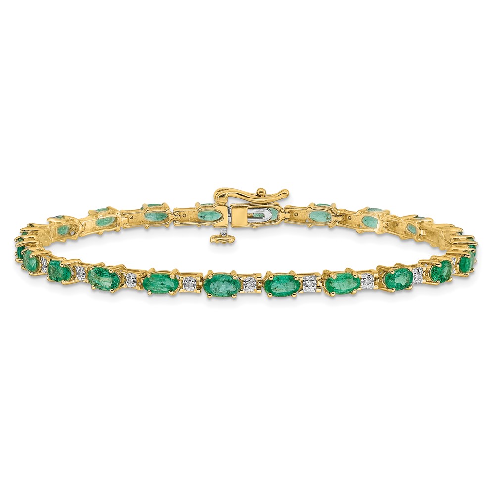 14k Complete Diamond and Oval Emerald 7 inch Bracelet