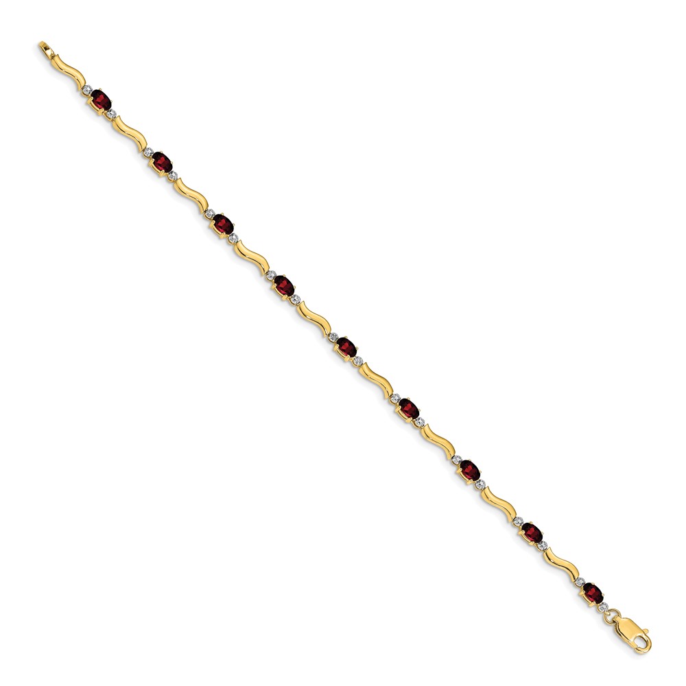 14k Complete Diamond and Oval Garnet Wavy Link 7 inch Bracelet