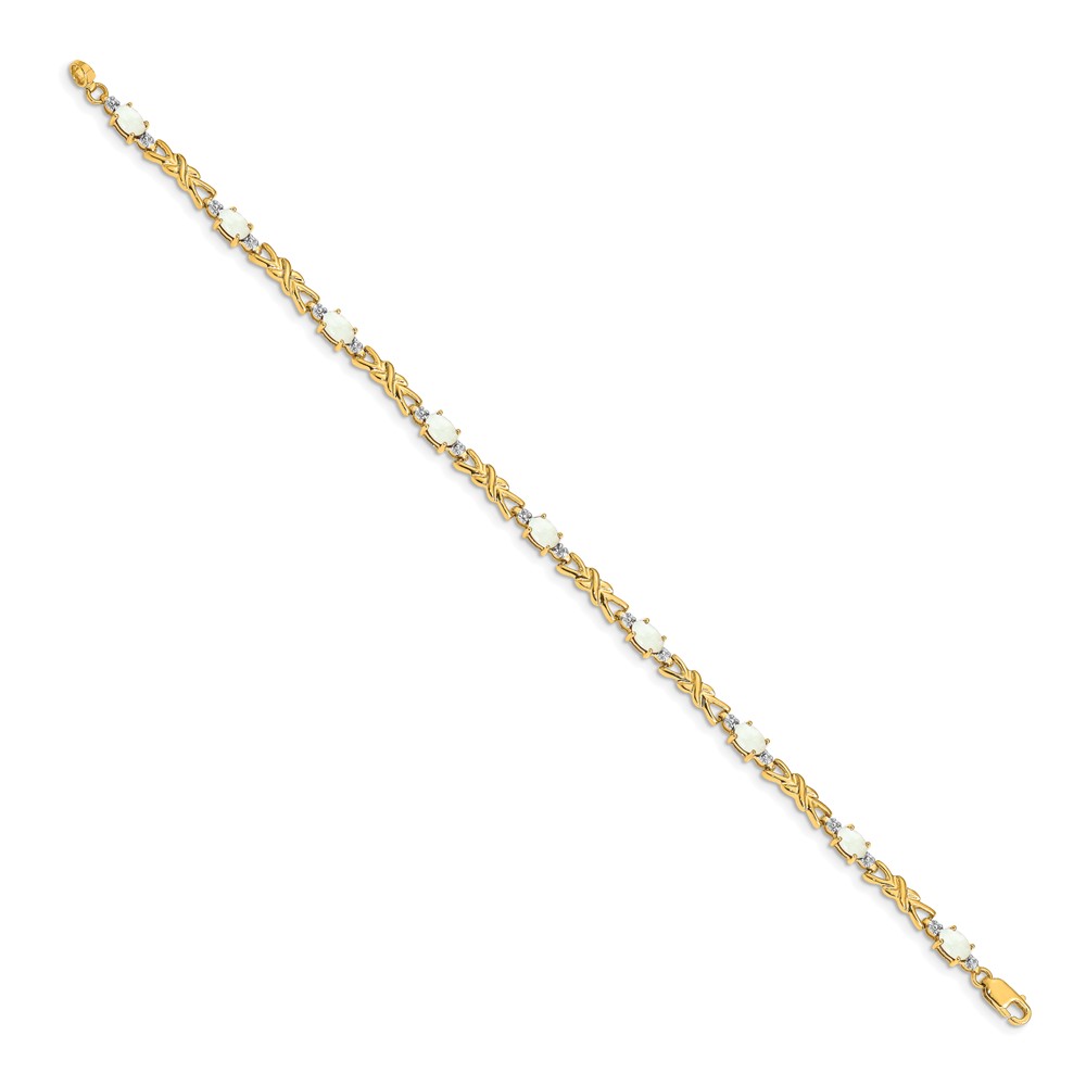 14k Complete Diamond and Oval Opal X-design 7.25 inch Bracelet