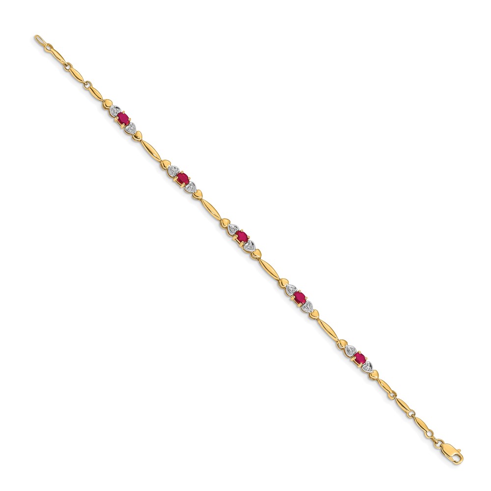 14k Complete Diamond and Oval Ruby Heart Design 7 inch Bracelet