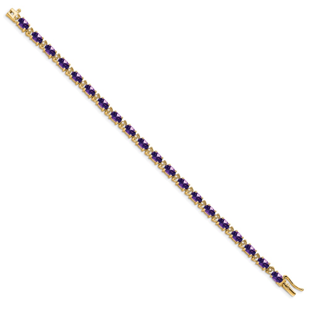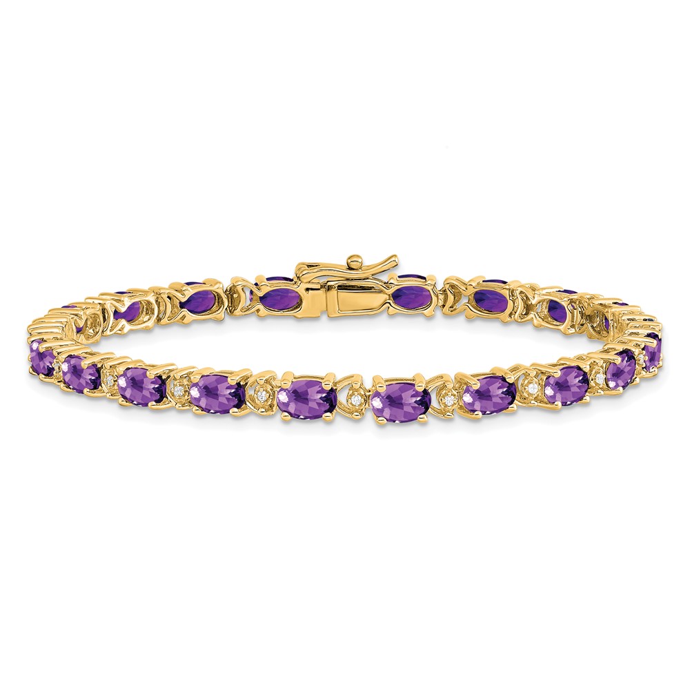 14k Complete Oval Amethyst and Diamond 7 inch Bracelet