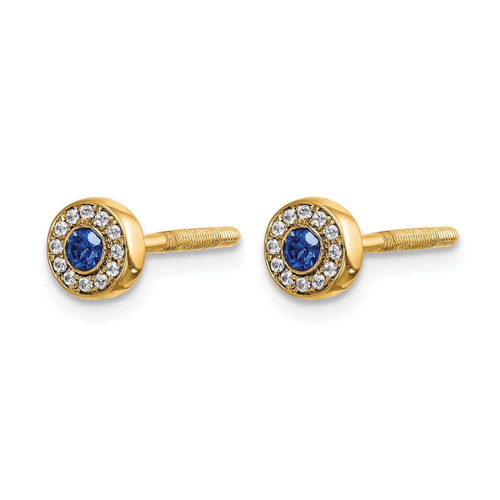 14k Diamond and 2.3mm Round Sapphire Halo Post Earrings