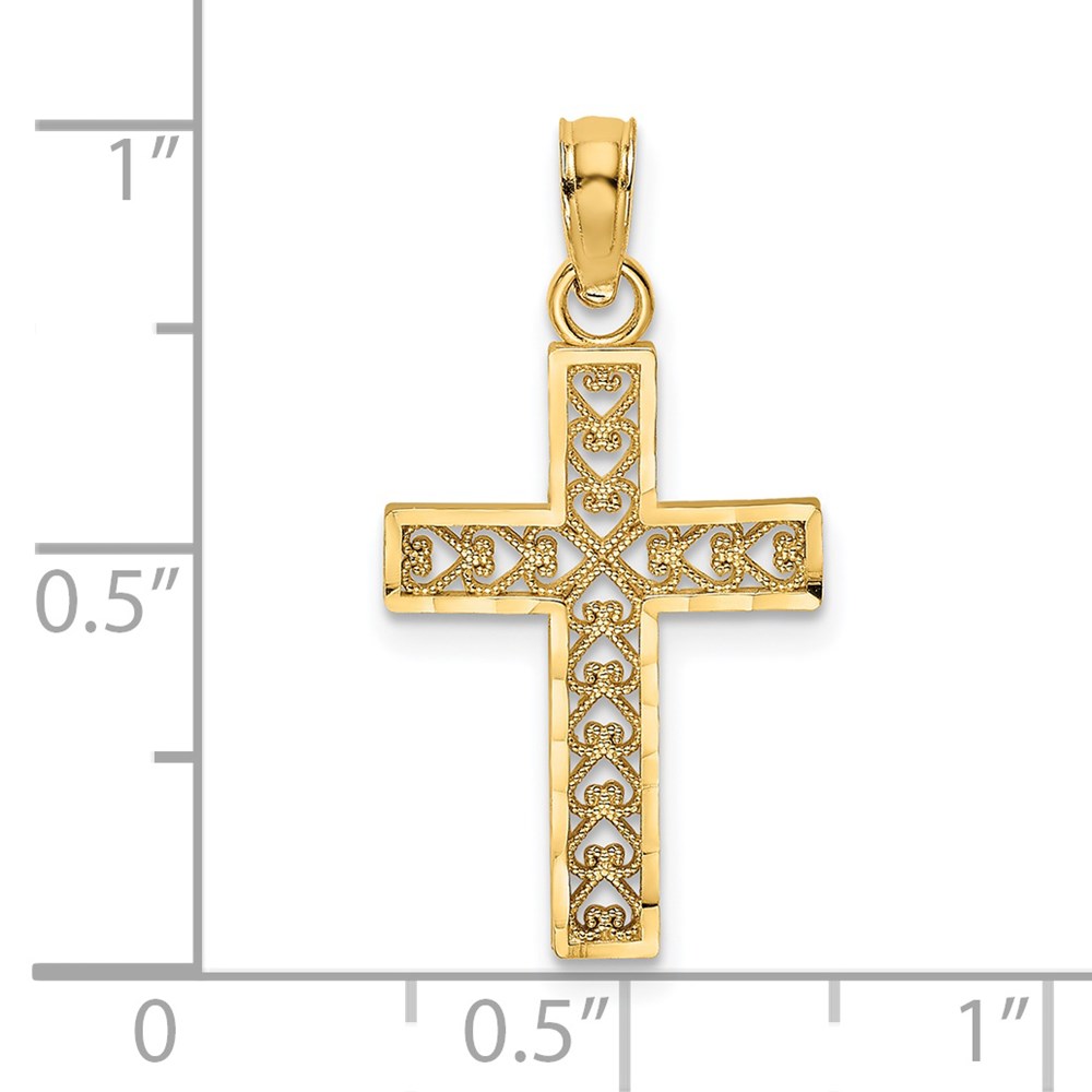 14K Diamond-cut Edge and Filigree Center Cross Charm