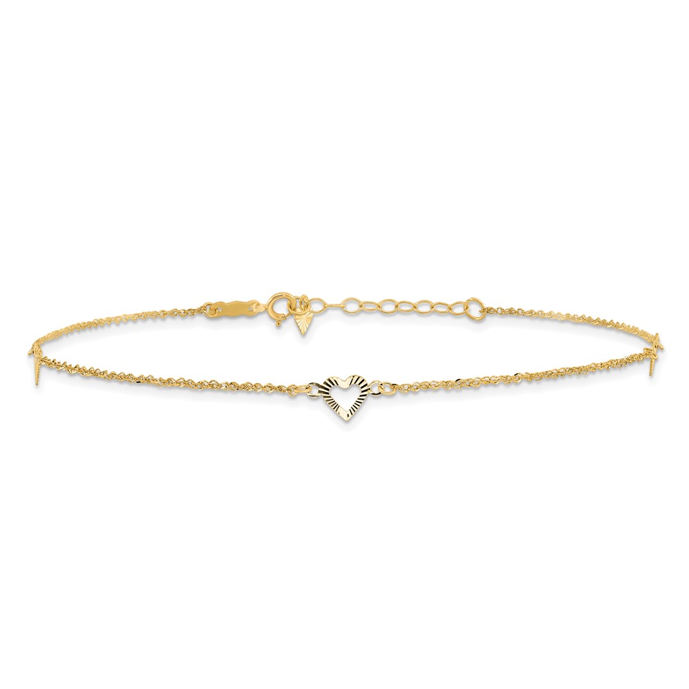 14k Diamond-cut Open Heart and Rope Chain Anklet