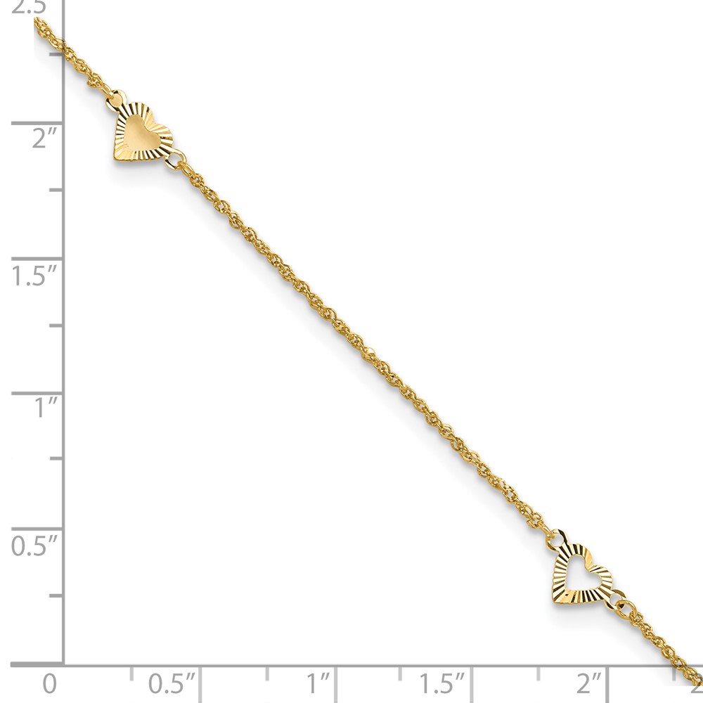 14k Diamond-cut Hearts 3-Station Plus Extender – Total Anklet
