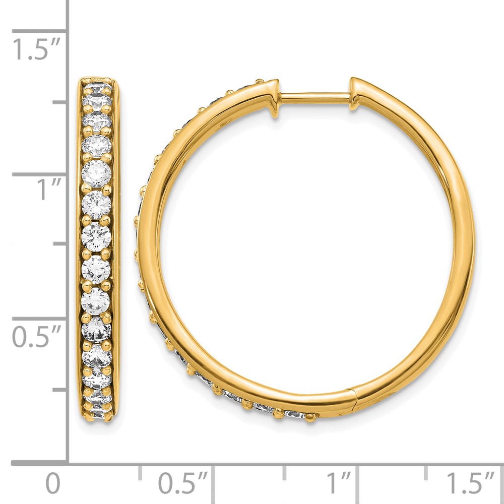 14k White Gold 2.7mm Round Ruby Cabochon and Diamond Hinged Hoop Earrings