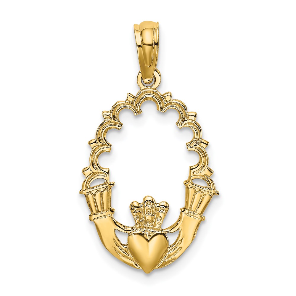 14K Engraved Claddagh In Oval with Lace Trim Charm